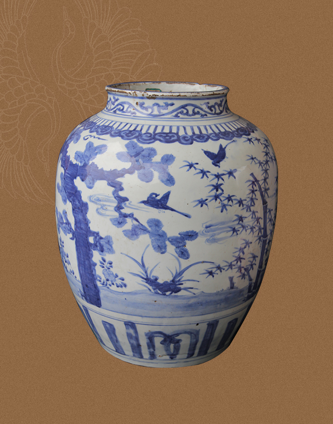 梅竹青花大药罐