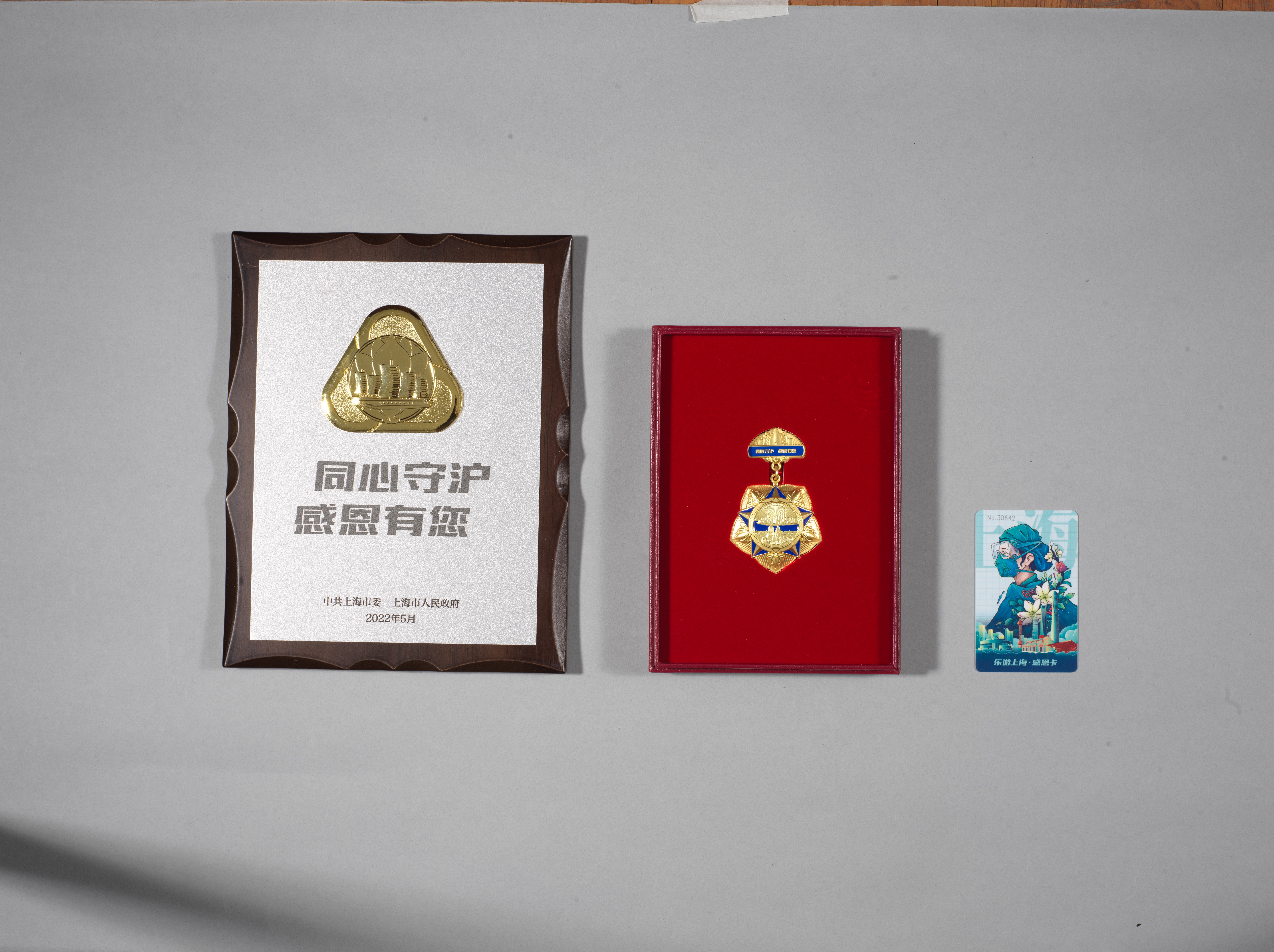 2022年援沪抗疫纪念牌、纪念章和感恩卡