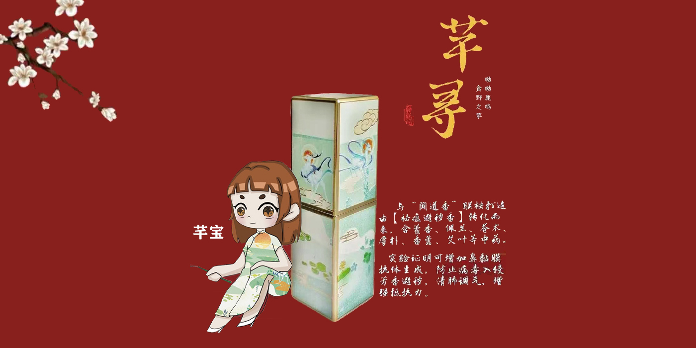 远黛:腾云仙鹤、幽远山水为景,寄“野鹤孤云原自在”之情,为改善唇炎经典款;栖霞:烟紫霞云,柳风丹霞为景,取“霜叶红于二月花”之意,涂抹后随唇部温度温变淡粉色;芊寻:以鹿王九色,清新草本为景,融“林空鹿饮溪”之境,由“祛瘟避秽香”转化而来,含藿香、佩兰等,该方可增加鼻黏膜抗体,预防病毒入侵,芳香避秽。