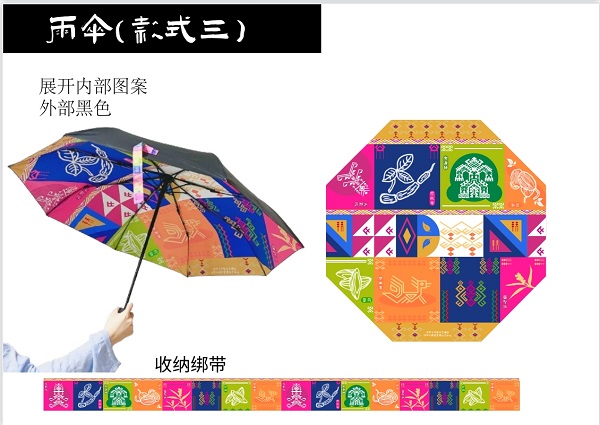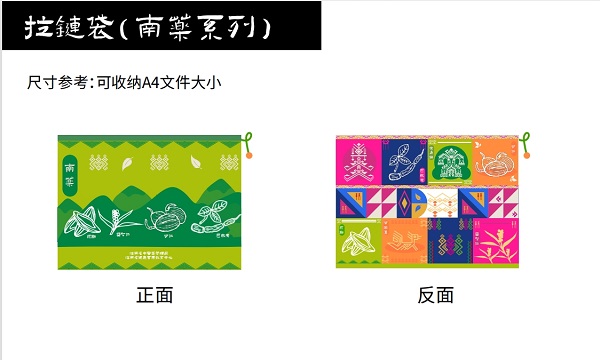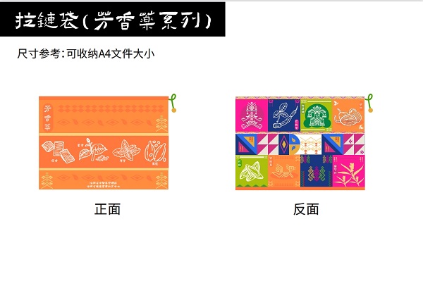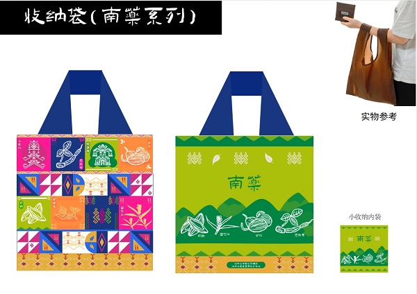 本系列产品包括马克杯、收纳袋、文件袋、雨伞等日常生活用品。设计保留了黎锦图纹与黎族医药理念,巧妙融合了海洋药、南药以及芳香药所蕴含的色彩和图案,并以黎族主要文化记载形式——黎锦作为设计蓝本,精选几何纹、鱼纹等图腾纹样作为设计语言,既具有传统韵味又不失现代感,是创新性与实用性的结合。