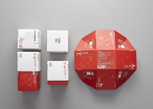 礼盒源自御传六代两百年正信堂国药号左营店百草柜,用上等原木制作而成,收纳来自世界各地珍贵药材,将百草柜缩小设计成礼盒,包装为上下盒设计,下盒部分将调理和使用说明设计于结构中,印刷只用两个颜色,可降低成本兼具环保。药膳及养生茶包装盒上设计印制中药素材,特以上光方式处理,富含中医养生意涵,具有祝福健康长寿之意。