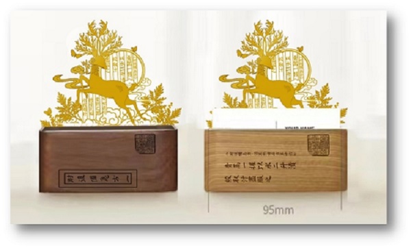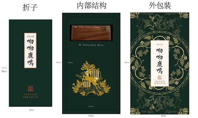书签配有古籍形制的木质底座,正面有《肘后备急方》古籍封皮仿刻字及中国中医科学院图书馆馆藏印章,背面则刻制了《肘后备急方》部分条文。底座同时设计有置物格,可放置名片、便利贴等,兼具实用属性。配套设计的“呦呦鹿鸣”八折页宣传册以时间轴的形式,对人类与疟疾疾病的抗争历程进行了清晰简练的梳理,从而使大众更加深刻体会到屠呦呦研究员“源于古籍、发于鼎新”,传达中医药人团结奋进、传承创新的力量与决心,展示了中医人对中医药事业的热爱,以及对前辈先贤们的无比崇敬。