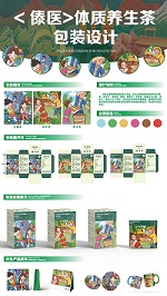 包装主要采用插画的设计手法,结合云南傣族的民族特色元素,如:泼水节、吊脚楼、傣装、芭蕉叶、大象等,插画分为儿童、成年人、老年人三个部分,分别对应不同的消费群体,消费者可以根据不同年龄段的生体情况来选择不同种类的养生茶,来达到对应的功效。