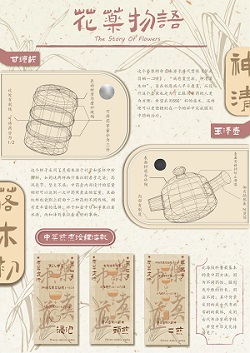 花药物语是一款将传统中药与现代设计理念巧妙结合的创意产品。套装内包括精选中药药材花为灵感的邮票、年历、信纸及煎煮中药套装。邮票采用十二种花草药的图案设计,美观实用,配套的信纸套装详细介绍了每种花草药的功效及性味;煎煮套装还通过精心设计让使用者更便捷地服用中药。这是对中药文化弘扬,更是对现代生活品质的提升与追求。