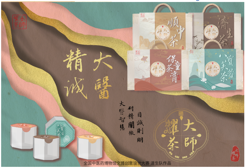 参加本届大赛的4支冠名团队及作品分别是创立科创队设计的筑元吉康牌四季养生系列中药保健食品综合策划、片仔癀队设计的片仔癀IP形象设计、道生队设计的大师耀茶系列产品外包装设计和金水宝制药队设计的黄氏响声品牌IP形象设计。4支团队代表分别从文创产品的设计理念、设计过程和应用推广前景进行了精彩演讲,专家组对作品给予了高度评价。最终经过激烈角逐,道生队获得本届大赛冠军,创立科创队获得最佳艺术奖,片仔癀队获得最佳传承奖,金水宝制药队获得最佳创意奖。